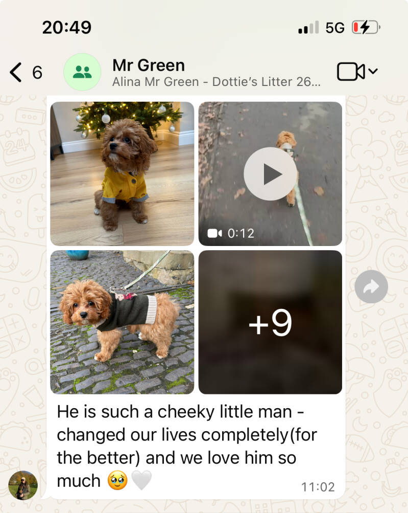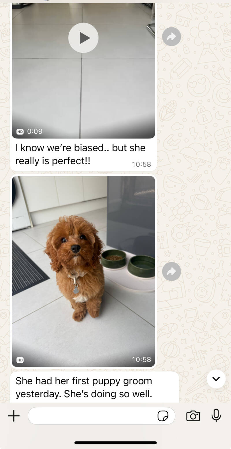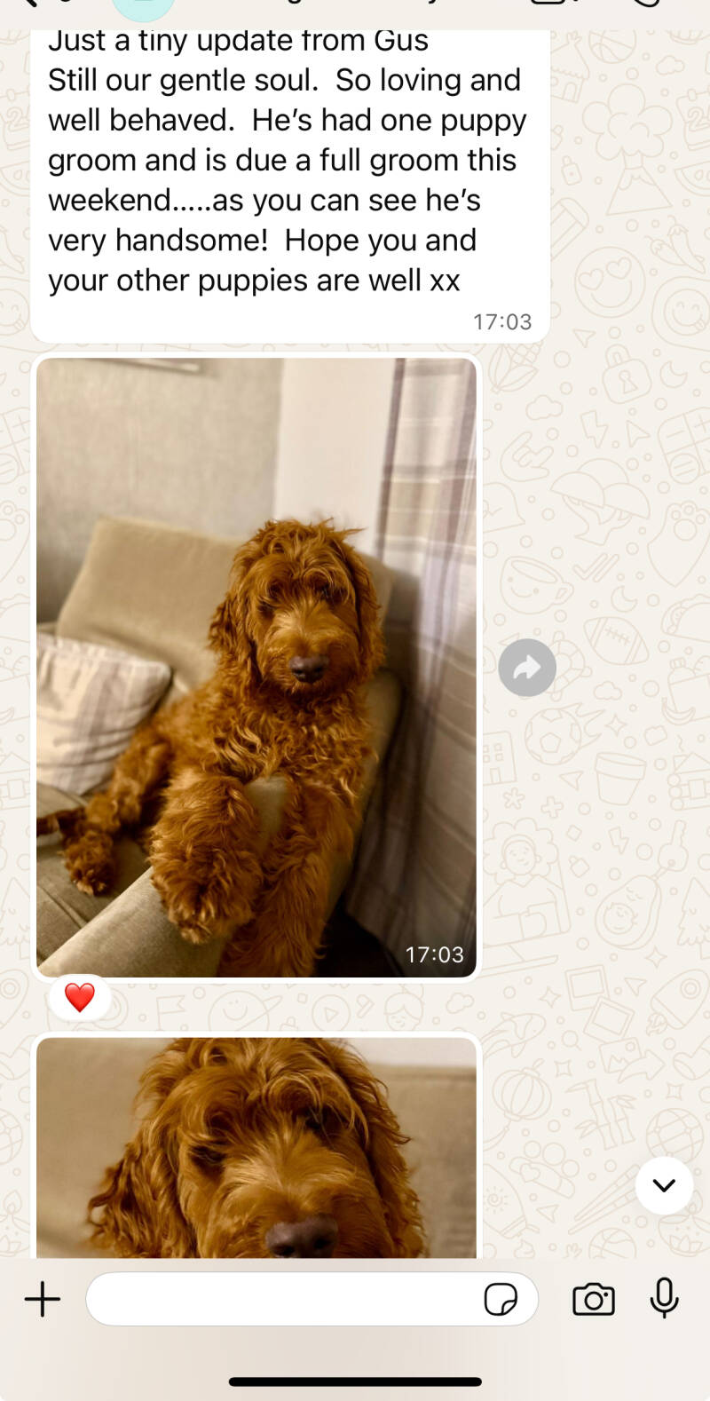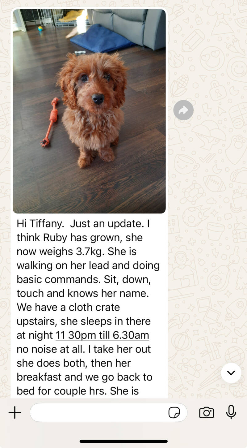 "From the very first contact, Dressedtothrill Doodles & Cavapoo's were fantastic. They answered all our questions and provided so much support. Our puppy is healthy, happy, and has settled in perfectly. Highly recommend!"